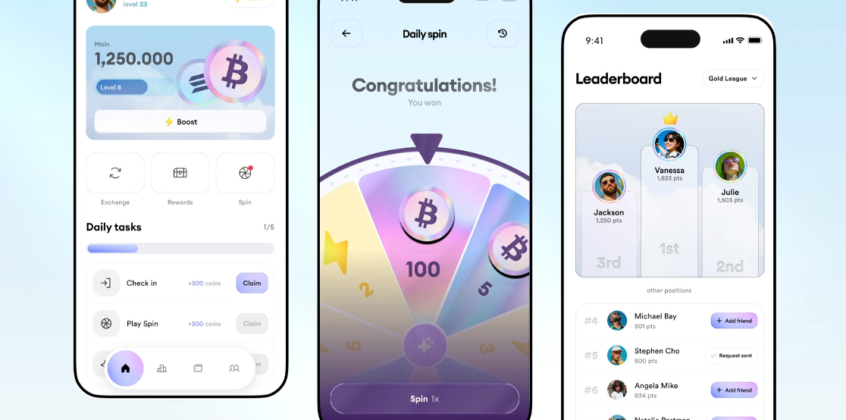 Digcy’s Crypto App concept transforms everyday crypto use into an engaging, game-like experience by highlighting a daily rewards mechanic at the heart of the interface. Vibrant colors and dynamic visuals draw attention to the spin feature, making interaction feel both exciting and effortless.
