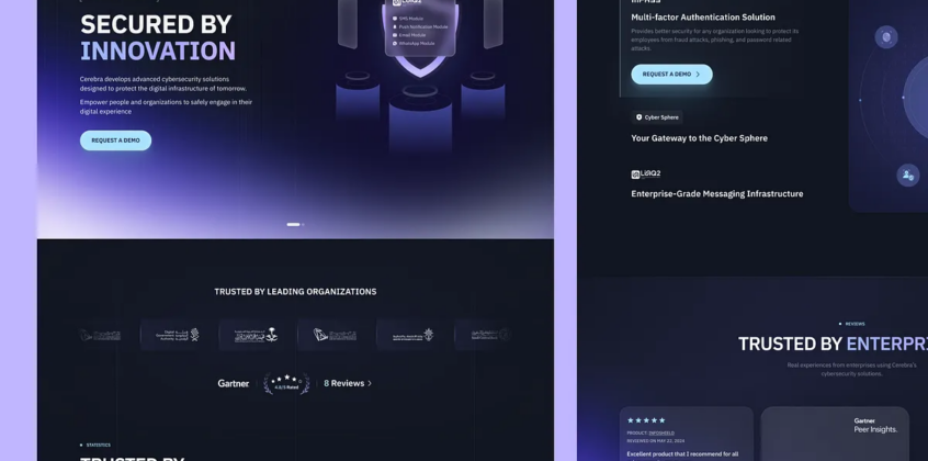 Wavespace crafted the Cerebra cybersecurity landing page to make complex enterprise security easy to grasp. Clear hero sections and modular content highlight identity management, integrations, and scalability.