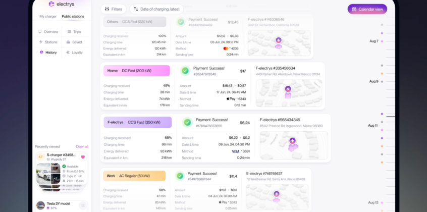 Fireart Studio designed Electrys to make EV charging simple and predictable. The interface structures key actions: finding stations, checking availability, and starting sessions into clear, step-by-step flows.