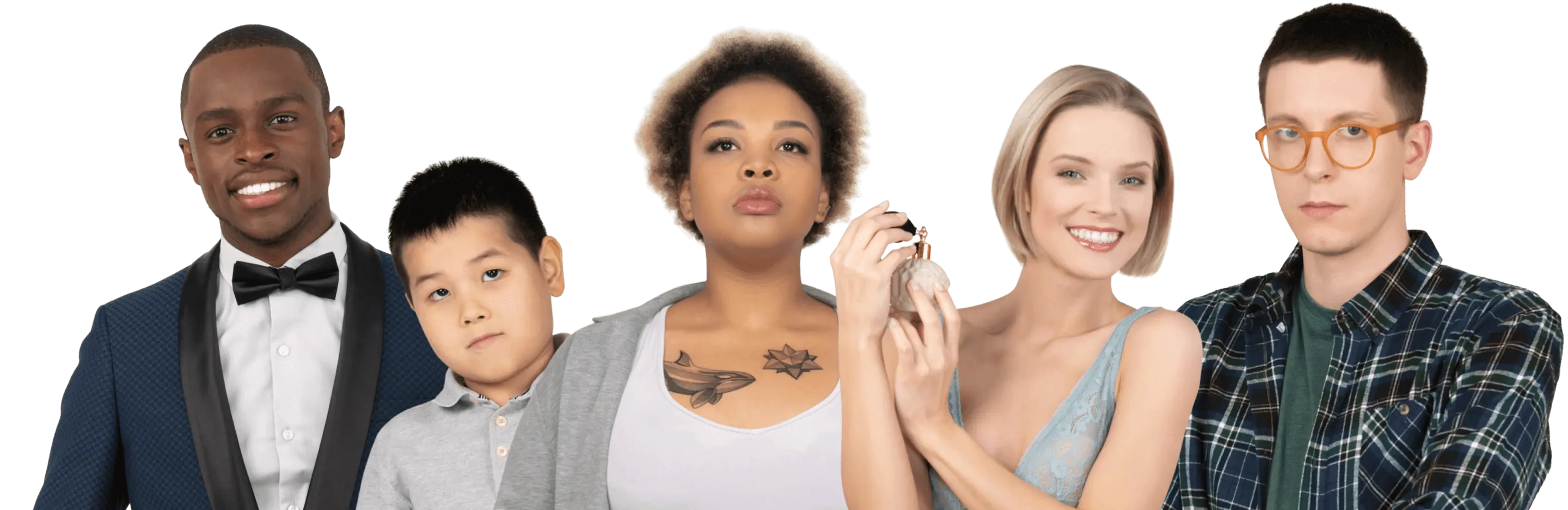 Large pose variations, from front-facing photos to side portraits